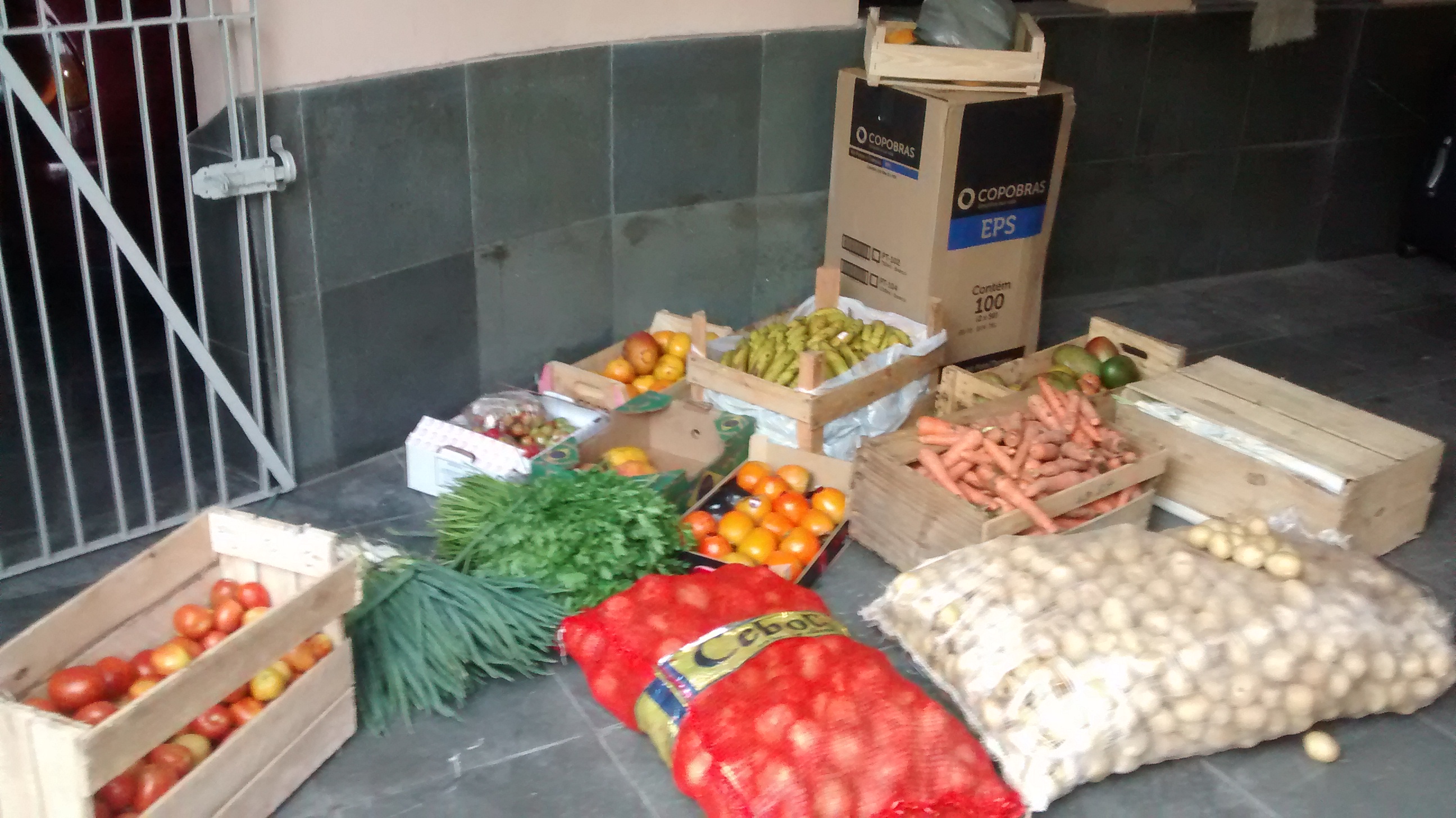 Repetimos a façanha de pedir alimentos no CEASA e conseguimos muita coisa. Quase não conseguimos trazer tudo o que ganhamos.