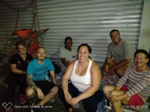 Então quando nos nos aproximamos perguntamos se ela queria comida, chinelo e água? Ela logo aceitou e disse eu preciso muito de um abraço.
