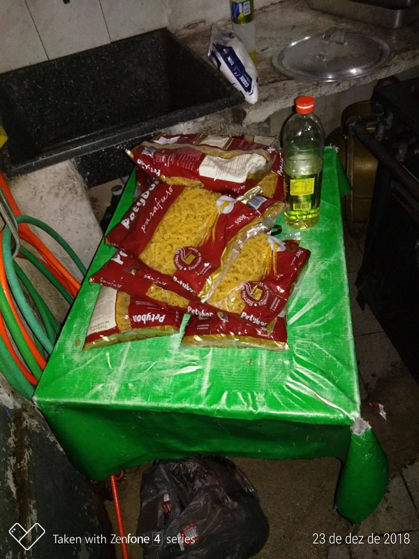 Aceitaram comida e os presentes, perguntamos o tamanho do pé, para a nossa surpresa o Isaías disse que calçava tamanho 45.