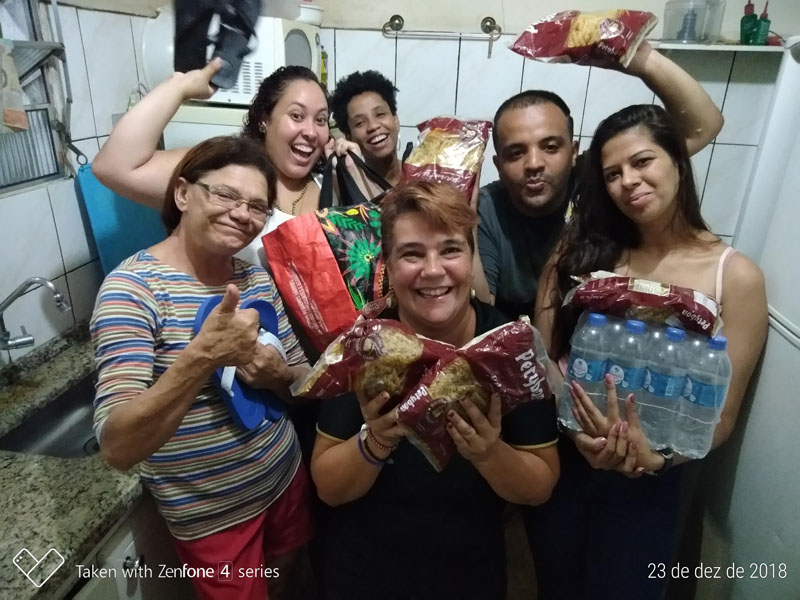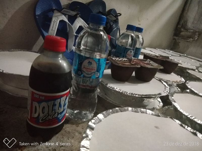 Foi entregue um kit com um Presentinho de Natal junto: Água, Refrigerante, Danete e os talheres. A parte disso tudo, conseguimos 30 pares de chinelos onde foi uma festa entregá-los.