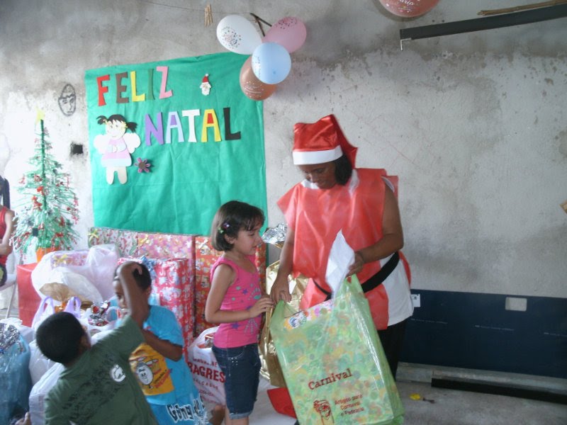 O Célula de Luz falou em breves palavras o significado do Natal, depois cada criança foi fotografada na frente da árvore de natal (sozinha e depois com a família), em seguida foi servido coxinha e lanche com refrigerante, depois teve a entrega dos presentes, comemos o bolo e a festa acabou quando todas as crianças estavam já felizes e as mães também.