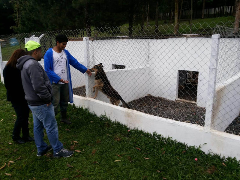Fomos recebidos com grande entusiasmo pelo caseiro que se chama Euclides. Ele é jovem ainda, mas demonstrou grande maturidade, trabalha no que gosta, veio de Itanhaém há 10 meses para cuidar dos cachorros da ONG Cão sem Dono, onde ele conta que entrou na internet, achou o site deles e veio falar com o Presidente e logo foi contratado, para sua alegria.
